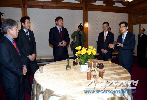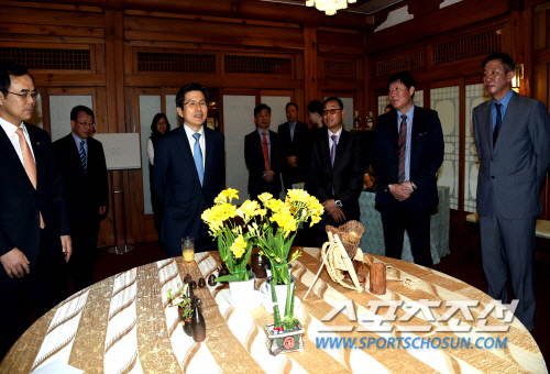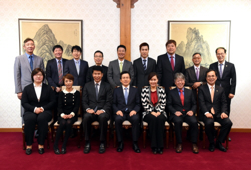 황교안 국무총리가 30일 서울 삼청동 총리공관에서 꾸준한 사회공헌 활동을 이어가고 있는 스포츠스타들을 초청해 오찬 간담회를 가졌다.