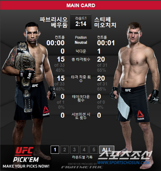 스티페 미오치치(미국)가 UFC 헤비급 챔피언이 됐다.