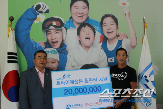장미란재단이 비인기종목 지원 사업을 통해 트라이애슬론 선수 오영환에게 2000만원을 지원한다.
