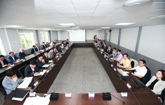 2018평창동계올림픽 및 동계패럴림픽대회 조직위원회(위원장 이희범)가 평창 시대를 열었다. 20일 오전 평창 주사무소에서 열린 첫 간부회의 장면. 사진제공=평창 동계올림픽 조직위
