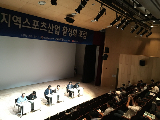 이에 따라 정부가 지역 스포츠산업 발전 방향을 모색할 수 있는 자리를 만들었다. 문화체육관광부(이하 문체부)가 주최하고, 국민체육진흥공단 한국스포츠개발원이 주관하는 '지역 스포츠산업 활성화 포럼'이 28일 광주 국립아시아문화전당 극장3에서 열렸다. 이 포럼에는 김 종 문체부 제2차관을 비롯해 유의동 한국스포츠개발원 스포츠산업실 실장, 박재영 프로스포츠협회 사무총장 등 지방자치단체의 담당자 및 단체, 산업체 직원이 참석했다.