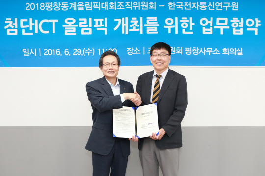 평창동계올림픽과 한국전자통신연구원(ETRI)이 세계 최고 수준의 정보통신기술을 선보이기 위해 손을 잡았다.