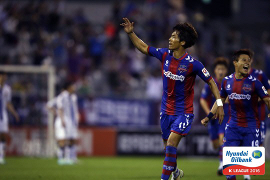 몸을 아끼지 않는 노장의 모습에 후배들이 화답했다. 홀린 듯 투지를 불태웠다. 스타 선수들이 즐비한 전북도 김한원의 기백 앞에서 맘껏 웃지 못했다. 조 감독도 경기 후 "맏형으로 최선을 다해준 김한원에게 특히 고맙다"며 칭찬을 아끼지 않았다. 하지만 정작 김한원은 덤덤했다. 그는 "승점 3점이 필요한 시기라 결과가 아쉽기만 하다. 다만 우리가 하나로 뭉치면 전북 같은 강팀과도 해볼만 하다는 것을 보여준 점에는 만족한다"고 했다. 김한원은 이날 동점골까지 넣었다. 후반 37분 재치있는 프리킥을 성공시켰다. 김한원은 "거리가 멀어서 인플레이가 가능한 상황이었다. 심판이 '거리 재줄까' 묻길래 '비켜달라'고 하고 바로 찼다. 권순태 골키퍼가 방심하고 있는 틈에 보인 공간에 때렸는데 운이 좋았다"고 웃었다.