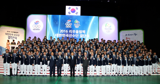대한체육회는 19일 서울 송파구 올림픽공원 내 올림픽홀에서 리우올림픽 한국 선수단 결단식을 갖고 기수와 주장을 선임했다.