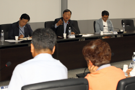이희범 평창 동계올림픽 조직위원장이 21일 올림픽 주 개최지역인 평창군 대관령면 이장협의회와 간담회를 갖고 지역주민들의 협조를 당부했다.