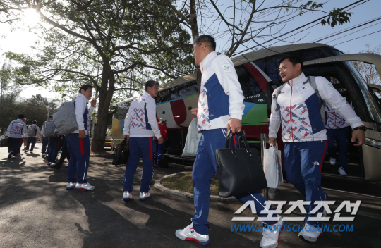 한국 선수단 본진과 관계자들이 27일(현지시간) 오후 브라질 리우데자네이루 올림픽선수촌에 도착해 버스에서 내리고 있다. 2016.7.27 리우/올림픽사진공동취재단h