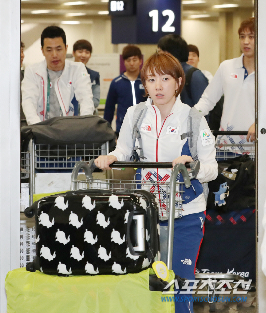 2016 리우올림픽에 출전하는 탁구 대표팀 선수단이 30일(현지시간) 브라질 리우데자네이루 갈레앙 국제공항에 도착한 가운데 서효원 선수가 출국장을 나서고 있다. 2016.7.30/리우=올림픽사진공동취재단 J