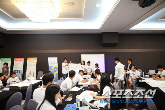 1박2일의 빡빡한 일정, 장새별 아나운서가 마이크를 잡았다. 차분한 진행에 긴장한 학생들의 표정이 풀어졌다. (주)휠라코리아의 정승욱 마케팅팀 본부장의 '눈높이 환영사'가 이어졌다. "즐겁고 재미있게. 그리고 이왕 시작한거니까 상을 받을 수 있도록 열심히 해야겠죠~." 어린이 프로그램 '뽀뽀뽀'식 말투, 눈높이가 너무 낮았다. 덕분에 분위기는 한층 밝아졌다.