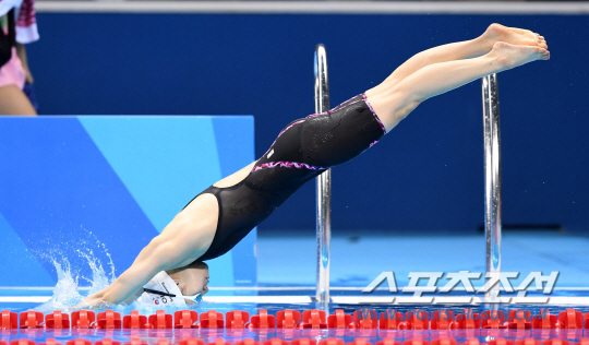 한국 수영대표팀이 31일 오후(현지시간) 브라질 리우데자네이루 올림픽 아쿠아틱 스타디움에서 훈련을 펼쳤다. 김서영이 힘차게 입수하고 있다.