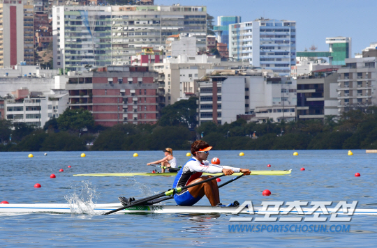 조정 싱글스컬 김동용 선수가 31일 오전(현지시간) 2016 리우올림픽이 열리는 브라질 리우데자네이루 코파카바나 라고아 경기장에서 현지적응훈련을 하고 있다. /2016.7.31/리우데자네이루=올림픽사진공동취재단