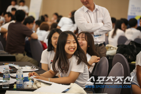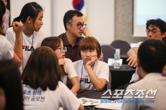 1박2일의 빡빡한 일정, 장새별 아나운서가 마이크를 잡았다. 차분한 진행에 긴장한 학생들의 표정이 풀어졌다. (주)휠라코리아의 정승욱 마케팅팀 본부장의 '눈높이 환영사'가 이어졌다. "즐겁고 재미있게. 그리고 이왕 시작한거니까 상을 받을 수 있도록 열심히 해야겠죠~." 어린이 프로그램 '뽀뽀뽀'식 말투, 눈높이가 너무 낮았다. 덕분에 분위기는 한층 밝아졌다.