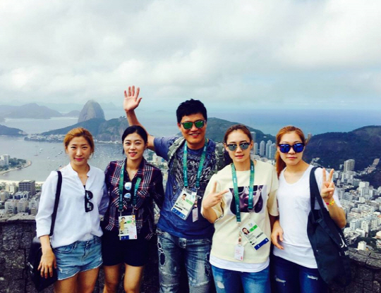 2012년 런던올림픽 여자사브르 개인전 금메달리스트 '미녀 검객' 김지연(28·익산시청)은 지난 2일 자신의 인스타그램에 '리우 입성' 인증샷을 찍어올렸다. 유상주 코치가 이끄는 여자 사브르 대표팀 4총사, 김지연, 황선아(27·세계 랭킹 13위), 서지연(23·세계 랭킹 14위), 윤지수(23·세계 랭킹 16위)가 리우 코파카바나 해변을 배경으로 환한 미소를 지은 채 포즈를 취했다. 김지연은 '브라질 리우데자네이루, 우리 모두 화이팅! 뜻깊고 좋은 추억 쌓아서 돌아갈 수 있도록'이라고 썼다.