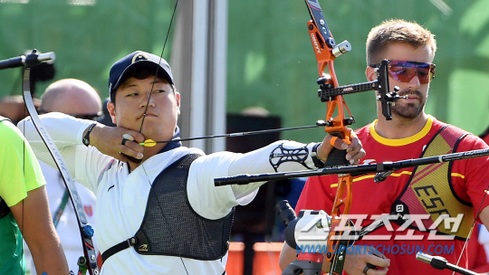 남자 양궁 이승윤 선수가 5일(현지시간) 브라질 리우 마라카낭 삼보드로무 양궁경기장에서 열린 개인 예선전에서 활시위를 당기고 있다./2016.8.5./리우데자네이루=올림픽사진공동취재단