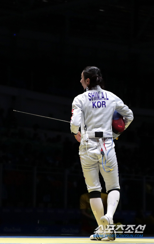 신아람 선수가 6일 오전(현지시간) 브라질 리우데자네이루 바하 올림픽파크 카리오카 경기장에서 열린 펜싱 여자 에페 32강 경기에서 우크라이나 올레나 크리비트카에게 아깝게 패하고 경기장을 나서고 있다./2016.8.6/리우데자네이루=올림픽사진공동취재단