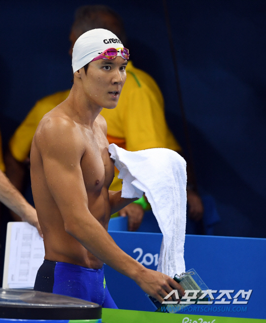 400M 자유형에 출전한 박태환 선수가 5일 오후(현지시간) 브라질 리우데자네이루 바하 올림픽 수영장에서 경기 후 수영장을 나서고 있다. /2016.8.5/리우데자네이루=올림픽사진공동취재단