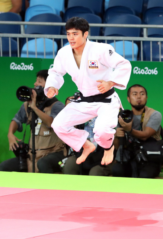 김원진 선수가 5일 오전(현지시간) 브라질 리우데자네이루 바하 올림픽파크 경기장에서 열린 유도 남자 66kg급 이하 32강 경기에서 이탈리아 만지 선수와 상대하기 위해 입장하고 있다. 김 선수는 유효승을 거두고 16강에 진출했다./2016.8.5/리우데자네이루=올림픽사진공동취재단A