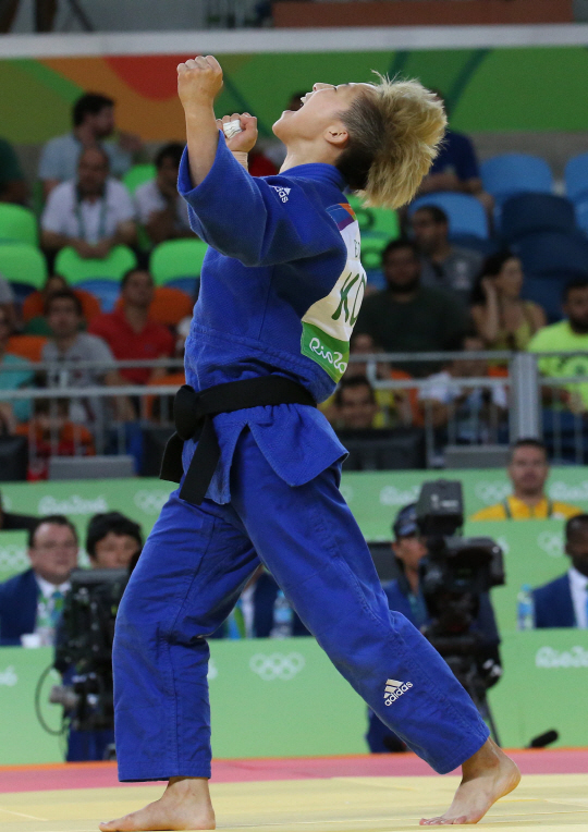 경기 재개를 앞두고 도복을 정리하던 정보경. 얼굴에 미소가 번졌다. 심판진이 문크바흐트의 반칙패를 선언했다. 업어치기가 들어가던 순간 정보경의 하체를 잡았다는 것. 규정상 손으로 하체를 공략하는 것은 반칙이다.