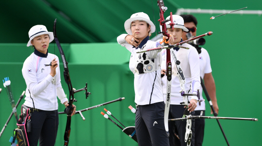 한국 여자양궁은 8일(한국시각)브라질 리우데자네이루의 삼보드로무에서 펼쳐진 일본과의 여자 단체전 8강에서 세트스코어 5대1(54-54, 57-51, 55-54)로 이겼다.