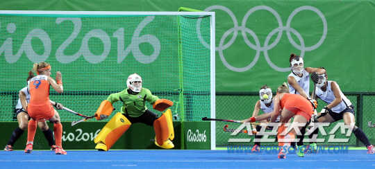 8일 오후 (현지시간) 브라질 리우데자네이루 데오도루 올림픽 하키센터에서 열린 네덜란드와 A조 조별리그 예선 2차전에서 네덜란드 선수가 슛을 하고 있다./2016.8.8./리우데자네이루=올림픽사진공동취재단