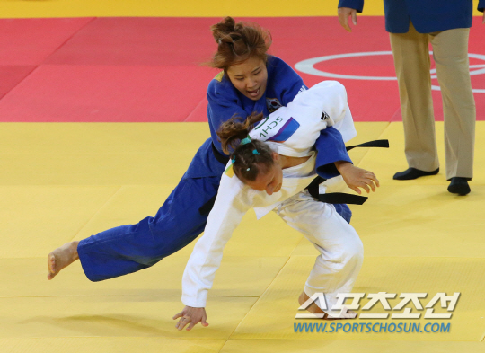 리우데자네이루 올림픽 여자 -63kg에 출전한 박지윤이 9일 오전(현지시간) 영국의 앨리스 쉴레징거와의 경기에서 한판패를 당했다. 박지윤의 경기 모습./2016.8.9/리우데자네이루=올림픽사진공동취재단 D