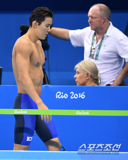 박태환이 9일 오후(현지시간) 브라질 리우데자네이루 바하 올림픽 아쿠아틱 스타디움에서 열린 2016 리우 올림픽 수영 남자 자유형 100m 예선에 출전해 49초24의 기록으로 4조 4위를 기록했다. 경기 종료 후 아쉬운 표정으로 라커로 향하는 박태환의 모습.