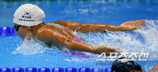 안세현 선수가 9일 오후(현지시간) 브라질 리우데자네이루 바하 올림픽 아쿠아틱 스타디움에서 열린 2016 리우 올림픽 수영 여자 접영 200m 예선에 출전해 전체 13위를 기록하며 16위까지 주어지는 준결승 진출을 확정지었다. 힘차게 역영하는 안세현의 모습.
