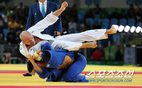 10일 오후(현지시간) 브라질 리우데자네이루 바하 올림픽파크 경기장에서 열린 유도 남자 90kg 이하 동메달 결정전에서 곽동한 선수가 스웨덴의 마르쿠스 니만선수에게 업어치기를 시도하며 동메달을 획득하고 있다. /2016.8.10/ 리우데자네이루=올림픽사진공동취재단