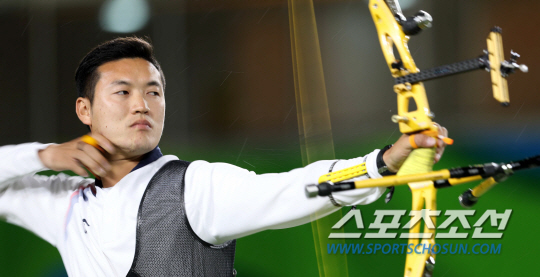 양궁대표팀 구본찬 선수가 10일 오후(현지시간) 브라질 리우데자네이루 마라카낭 삼보드로무 양궁장에서 열린 2016 리우올림픽 양궁 남자 개인전 64강 경기에서 활시위를 당기고 있다. 구본찬은 슬로바키아의 보리스 발라즈를 꺾고 32강전에 진출했다.