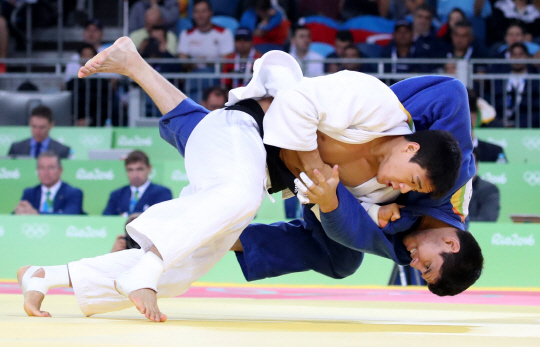 유도) 10일 오전(현지시간) 브라질 리우데자네이루 바하 올림픽파크 경기장에서 열린 유도 남자 90kg 이하 32강에 곽동한 선수가 칠레의 토마스 브리세노 선수에게 업어치기를 시도하고 있다. /2016.8.10/ 리우데자네이루=올림픽사진공동취재단 P