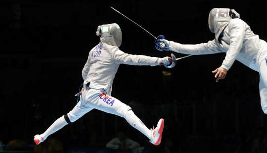 세계랭킹 2위 김정환은 32강에서 142위 요안드리 이리아르테 갈베스(쿠바)에 차원이 다른 기량을 발휘하며 2피리어드가 채 끝나기도 전에 15점을 찔러 15대7로 승리했다. 16강서 산드로 바자제(조지아)를 접전 끝에 15대14로 제압하며 8강에 올랐다. 11년차 베테랑 검객 김정환. 이제 금메달까지 두 계단 남았다.