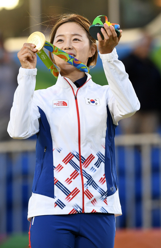 단체전에서 동료들과 함께 정상을 밟은 장혜진은 금메달을 목에 건 뒤 "솜사탕 맛"이라며 환하게 웃었다. 달달하고 달콤한 느낌이라는 의미였다. 개인전 금메달의 맛은 달랐다. 생애 처음으로 개인전 우승을 차지한 장혜진은 금메달을 거머쥔 직후 "초코파이 맛"이라고 표현했다.