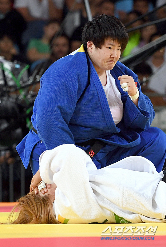한국 여자유도 김민정이 12일(현지시간) 브라질 리우데자네이루 올림픽파크 카리오리카 아레나 2에서 열린 2016 리우 올림픽 여자 유도 78㎏ 이상급 동메달 결정전 에서 중국의 유송 에게 한판패 후 아쉬워 하고 있다./2016.8.12/리우데자네이루=올림픽사진공동취재단L