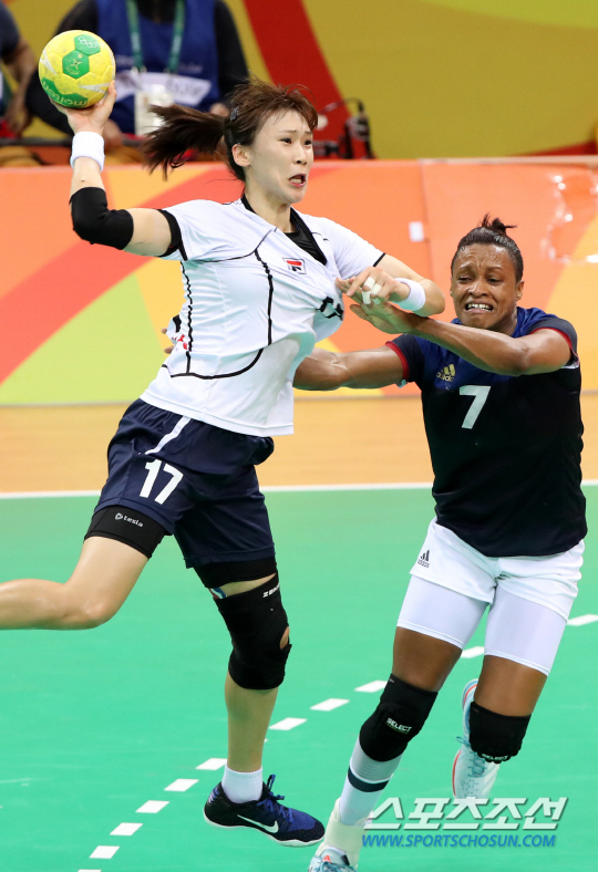 12일 오후(현지시간) 브라질 리우데자네이루 바하 퓨처아레나에서 열린 여자 핸드볼 조별리그 B조 4차전 프랑스와 경기에 심해인 선수가 슛을 날리고 있다. /2016.8.12./리우데자네이루=올림픽사진공동취재단 P