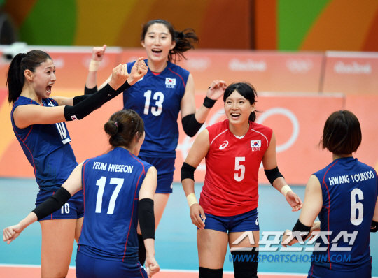 김연경 선수가 12일 저녁(현지시간) 브라질 리우데자네이루 마라카나징유 배구 경기장에서 진행된 2016 리우올림픽 여자배구 브라질전에서 득점 후 환호하고 있다./2016.8.12/리우데자네이루=올림픽사진공동취재단 M