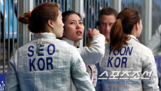 여자펜싱 김지연이 13일(현지시간) 브라질 리우데자네이루 바하 올림픽파크 카리오카 경기장3에서 열린 펜싱 여자 단체 사브르 8강전에서 우크라이나를 상대로 탈락한 가운데 아쉬운듯 점수판을 보며 퇴장하고 있다.2016.8.13/ 리우데자네이루=올림픽사진공동취재단 J