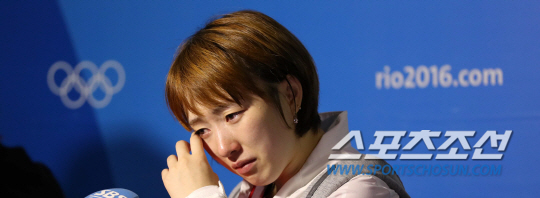 한국 여자탁구 대표 서효원이 13일(한국시간) 브라질 리우데자네이루 리오센트로 파빌리온3에서 열린 2016 브라질 리우올림픽 탁구 여자 단체 8강전에서 패한 뒤 눈물을 흘리고 있다. 2016.08.13/리우데자네이루=올림픽사진공동취재단 F