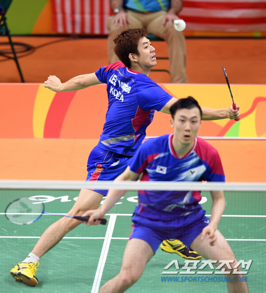 이용대, 유연성 선수가 15일 오전(현지시간) 브라질 리우데자네이루 바하 리우센트로 파빌리온4 경기장에서 열린 2016 리우올림픽 배드민턴 남자복식 8강전에서 말레이시아의 고위시엠,탄위키옹을 상대로 경기를 하고 있다./ 2016.8.15/ 리우데자네이루=올림픽사진공동취재단 M