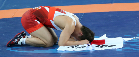 김현우 선수가 14일 오후(현지시간) 브라질 리우데자네이루 올림픽파크 카리오카 아레나2에서 열린 레슬링 그레코로만형 75kg급에서 크로아티아 보조 스타세비치를 누르고 동메달을 따냈다. 김현우 선수 경기가 끝난뒤 울고 있다./2016.8.14/리우데자네이루=올림픽사진공동취재단A