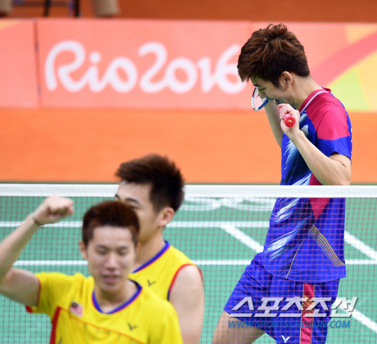 이용대, 유연성 선수가 15일 오전(현지시간) 브라질 리우데자네이루 바하 리우센트로 파빌리온4 경기장에서 열린 2016 리우올림픽 배드민턴 남자복식 8강전에서 말레이시아의 고위시엠,탄위키옹을 상대로 경기를 하고 있다.이용대가 경기 후 아쉬워하고 있다. / 2016.8.15/ 리우데자네이루=올림픽사진공동취재단 M