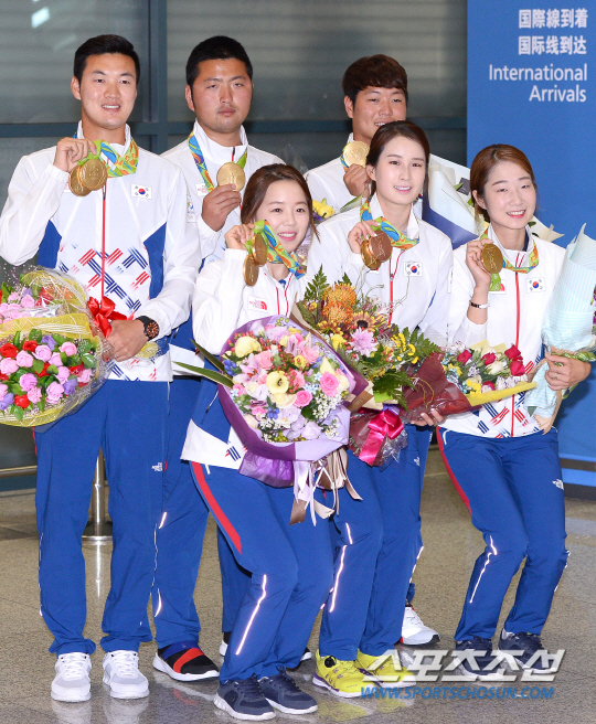 여자 단체전 금메달 최미선은 "가장 먹고싶은 음식은 삼겹살"이라며 "오늘 삼겹살 파티를 하고 싶다"고 했다. 장혜진은 "이렇게 많은 분들이 나와 계실 줄은 몰랐다"며 눈이 휘둥그레졌다. 장혜진은 스탠딩 인터뷰 후 아버지 장병일씨를 뒤늦게 발견하고 한걸음에 달려와 안겼다. 둘이 포옹하자 갑자기 언론 ENG카메라 수십여대와 사진기자들이 뒤엉켜 한동안 불꽃놀이 같은 카메라 플래시가 멈추지 않았다.