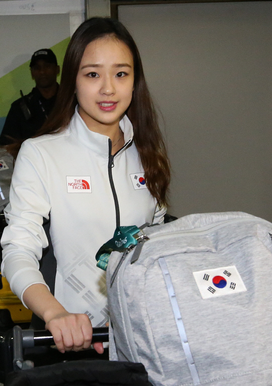 리듬체조에 출전하는 손연재가 15일 오후(현지시간) 리우데자네이루 갈레앙 국제공항을 통해 입국하고있다./2016.8.15./리우데자네이루=올림픽사진공동취재단 D