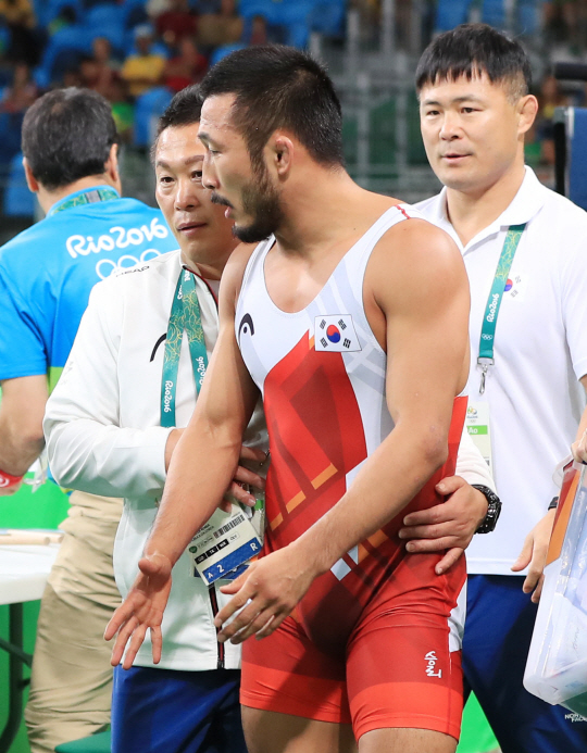 그는 8강전에서 미그란 아르투니안(27·아르메니아)에게 1대2로 패하며 4강 진출에 실패했다. "내가 부족해서 진 것 같다. 패자전을 준비 잘하겠다"고 했다. 기회가 찾아왔지만 올림픽 메달은 허공으로 날아갔다. 그는 "다시 마음을 추스려서 하려고 했는데…. 죄송하다"라고 한 후 한동안 말을 잊지 못했다. 그리고 "내가 경기에 집중하지 못했던 것 같다. 내가 분명 상대의 기술을 아는 데 너무 쉽게 당했다"며 "한국에서 응원해 준 국민들에게 죄송하고. 부모님 등 지인들에게도 마안하다"고 덧붙였다.
