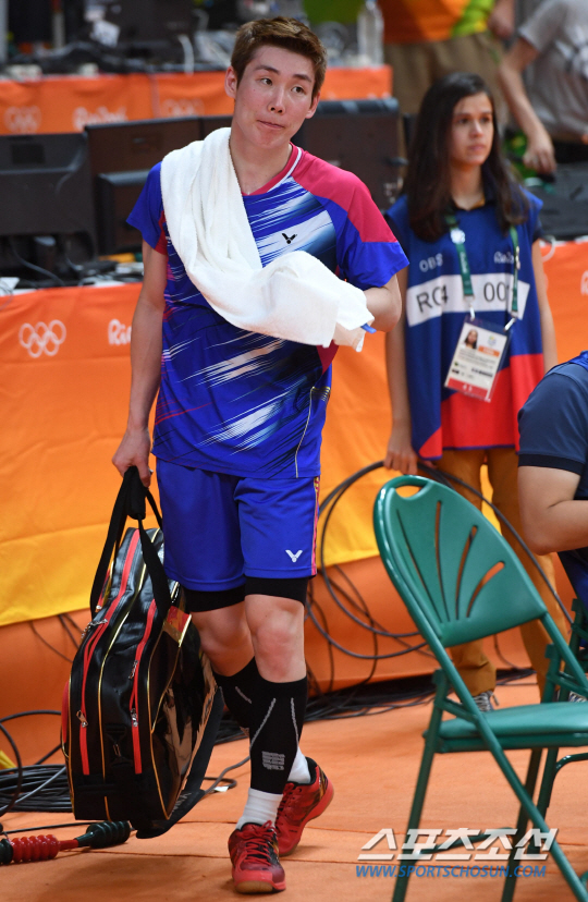 배드민턴 남자 단식에 출전한 손완호가 17일 오전(현지시간) 브라질 리우데자네이루 바하 리우센트루 파빌리온4에서 열린 2016 리우올림픽 배드민턴 남자 단식 8강전에서 세계랭킹 2위 천룽(중국)과 경기에서 2대1로 패하며 4강전 진출이 좌절됐다. 경기 종료 후 아쉬운 발걸음을 옮기는 손완호의 모습. /2016.08.15/리우데자네이루=올림픽사진공동취재단 N