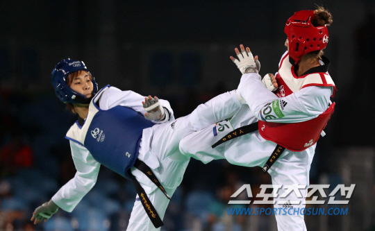 태권도 한국 대표 김소희가 17일 오전(현지시간) 브라질 리우데자네이루 바하 올림픽파크 카리오카 경기장3에서 열린 2016리우데자네이루 올림픽 태권도 여자 -49kg급 4강전에서 프랑스의 아지에즈 야스민스와 대결하고 있다. 김소희는 연장전에서 승리해 결승진출을 확정했다. 2016.8.17./리우데자네이루=올림픽사진공동취재단 F