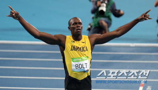 18일 오후 (현지시간) 브라질 리우데자네이루 마라카낭 올림픽 주경기장에서 열린 2016리우데자네이루 올림픽 육상 남자 200m 결승 경기에서 19초78의 기록으로 우승한 자메이카의 우사인볼트가 관중들에게 인사를 하고 있다. /2016.8.18/리우데자네이루=올림픽사진공동취재단 F