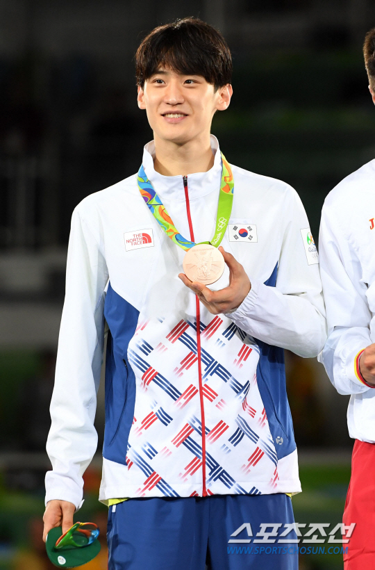 태권도 국가대표 이대훈 선수가 18일 오후(현지시간) 브라질 리우데자네이루 바하 올림픽파크 카리오카 아레나3에서 열린 2016 브라질 리우올림픽 태권도 남자 68kg급 동메달결정전에서 벨기에의 자우드 아찹과의 경기에서 승리하며 동메달을 획득했다. 이대훈이 동메달과 함게 포즈를 취하고 있다. /2016.08.18/리우데자네이루=올림픽사진공동취재단 N