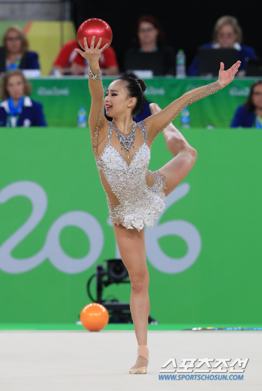 리듬체조 손연재가 19일 오후(현지시간) 2016 리우올림픽 리듬체조 개인종합 예선이 진행된 리우데자네이루 바하 올림픽파크 체조경기장에서 볼 종목 연기를 펼치고 있다./2016.8.19/ 리우데자네이루=올림픽사진공동취재단 I/