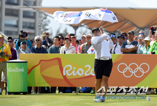 박인비 선수가 18일(현지시각) 브라질 리우데자네이루 바하 올림픽 골프코스에서 열린 여자골프 3라운드 1번홀 티샷을 하고 있다./2016.8.18/리우데자네이루=올림픽사진공동취재단L
