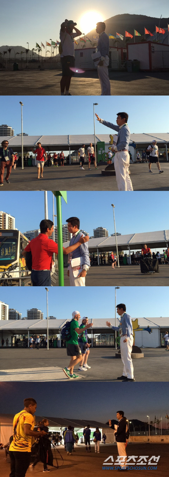 선수들이 자주 다니는 출입구 검색대 앞, 버스 정류장 앞 등 '좋은 목'에 자리를 잡았다. 처음에는 "저 사람 뭐야" 하던 시선이 며칠이 지나자 친근한 시선으로 바뀌었다. 땡볕 아래 대한민국 선수단복을 입고 매일 같은 시각 같은 장소에 서있는 그에게 먼저 손을 흔들고 말을 거는 선수들도 생겼다. '체조 요정' 시몬 바일스가 속한 미국 체조대표팀은 처음엔 본척 만척하더니 나중엔 먼저 다가와 인사를 하기 시작했다. "너를 뽑겠다"고 약속했다. 북한이 자랑하는 다이빙 요정들도 "우리도 추첨('투표'를 이르는 북한말)했습네다" 했다.