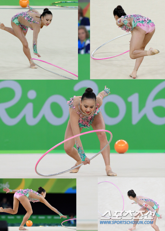 '한국 리듬체조의 간판' 손연재(22·연세대)가 장기인 후프에서 두 차례 실수로 개인종합 예선 중간순위 5위에 랭크됐다.